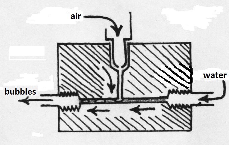 bubbles takes place. This mixture of air and water (bubbles) flows out
