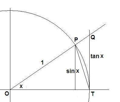 sin(x)/2 < x/2 < tan(x)/2 ↔ 1 < x/sin(x) < 1/cos(x) ↔ cos(x) < sin(x)/x < 1