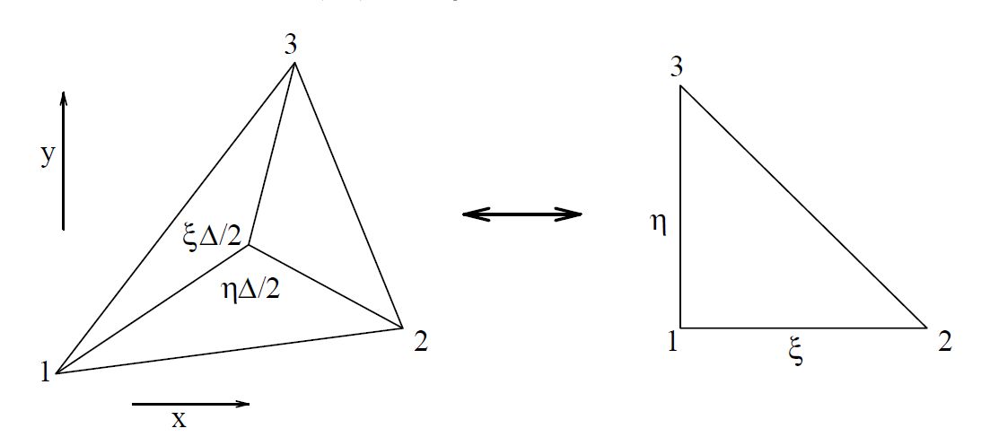 x = \sum_{k=1}^4 N_k(\xi,\eta)\,x_k \qquad ;