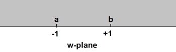 With $a=-1$ , $b=+1$ and $\alpha=\beta=0$ , giving: $$dw\;=\;K(z-1)^{-1}(z+1)^{-1}dz