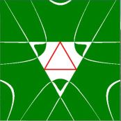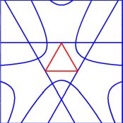 (seen in the plane of the triangle, with a transformation rectangular $(x,y) \rightarrow$ equilateral) :