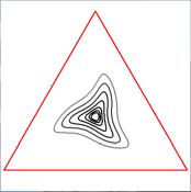 - Picture on the right: contour lines of $f(a,b,c)$ inside the triangle at levels $N = 1/2^k \;; \; k=0,\cdots,7$ .