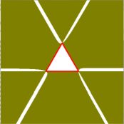 - Picture on the left: geometry of the conditions $a,b,c > 0$ and $a+b+c=3$ .
