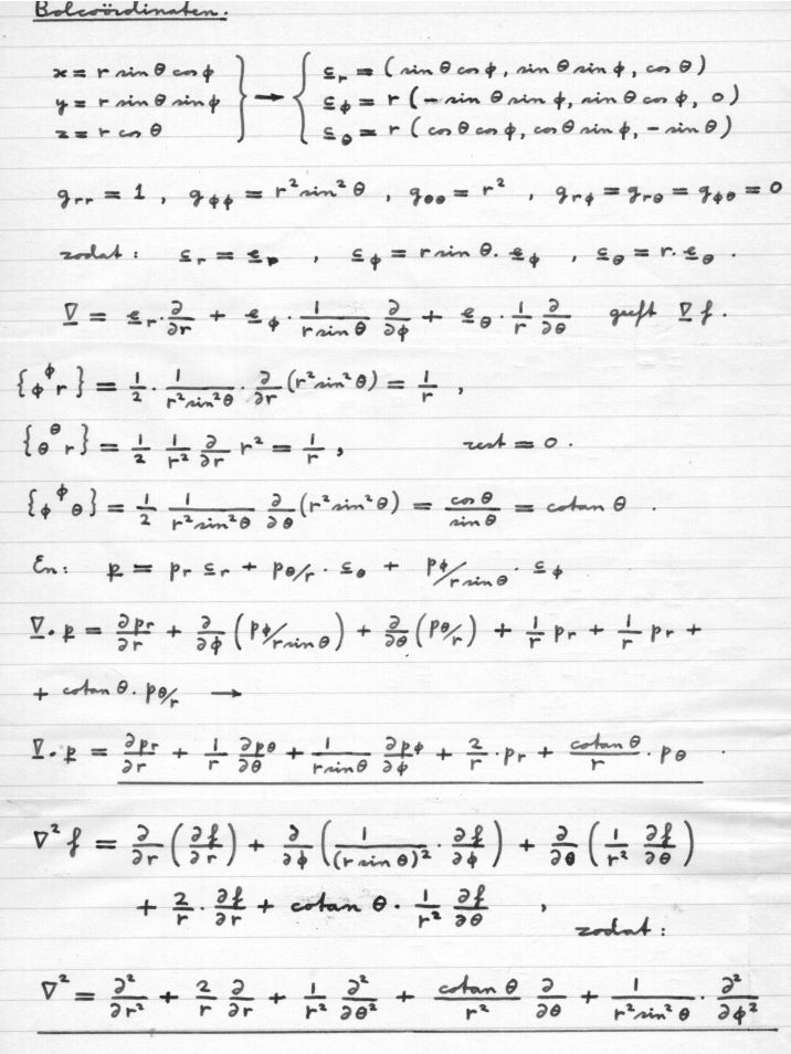 Below is a derivation of the gradient & Laplace operator, for spherical coordinates, as found in my old college notes: