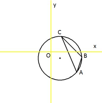 Substitute $(A,B,C)$ into $(x-a)^2 + (y-b)^2 = R^2$ :