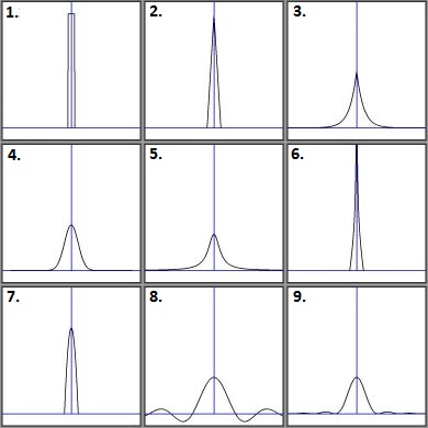 The secret is in scaling (with $\sigma$). Let $T(x)$ be one of the Test functions. Then quite in general we have, for any approximation of the Dirac delta with such a Test function ($\sigma > 0$) : $$ \delta_\sigma(x) = \frac{1}{\sigma}T\left(\frac{x}{\sigma}\right) \\ \int_{-\infty}^{+\infty}\delta_\sigma(x)\, dx = \int_{-\infty}^{+\infty} T\left(\frac{x}{\sigma}\right) d\left(\frac{x}{\sigma}\right) = \int_{-\infty}^{+\infty} T(x)\, dx = 1 $$ According to a sloppy definition, maybe used by some physicists, we have: $$ \delta(x) = \lim_{\sigma\to 0} \delta_\sigma(x) = \lim_{\sigma\to 0} \left[\frac{1}{\sigma}T\left(\frac{x}{\sigma}\right)\right] = 0 \quad \mbox{for} \quad x \ne 0 $$ Sloppy because, upon inspection, this limit covers only part of the geometrical representation, namely: $$ \{(x,y)|(y=0)\land(x\ne 0)\} \quad \mbox{but not} \quad \{(x,y)|(x=0)\land(y>0)\} $$ In order to cover the half $y$-axis case, we might need the inverse of the test function: $$ y = \frac{1}{\sigma}T\left(\frac{x}{\sigma}\right) \quad \Longrightarrow \quad x = \sigma.T^{-1}(y.\sigma) $$ And another limit, expressing that the upper $y$ - axis is approximated as closely as we want: $$ \lim_{\sigma\to 0} \left[\sigma.T^{-1}(y.\sigma)\right] = 0 $$ Example. Take test function number (5.), which is the Cauchy distribution: $$ T(x) = \frac{1/\pi}{1+x^2} \quad \Longrightarrow \quad \delta_\sigma(x) = \frac{1}{\sigma}T\left(\frac{x}{\sigma}\right) = \frac{1/(\pi\sigma)}{1+(x/\sigma)^2} $$ The inverse function (two branches) is found in a few steps: $$ y = \frac{1/(\pi\sigma)}{1+(x/\sigma)^2} \\ \frac{1}{\pi\sigma.y} = 1+(x/\sigma)^2 \\ x = \pm\sigma\sqrt{\frac{1}{\pi\sigma.y}-1} $$ For the sake of completeness: $$ \delta_\sigma^{-1}(y>0) = \begin{cases} \pm\sigma\sqrt{1/(\pi\sigma.y)-1} & \mbox{for} & y \le 1/(\pi\sigma) \\ 0 & \mbox{for} & y > 1/(\pi\sigma) \end{cases} $$ It is clear that for $x\ne 0$ : $$ \lim_{\sigma\to 0} \delta_\sigma(x) = \lim_{\sigma\to 0} \frac{1/(\pi\sigma)}{1+(x/\sigma)^2} = \frac{\sigma/\pi}{\sigma^2+x^2} = 0 $$ On the other hand, for $\,0 < y \le 1/(\pi\sigma)$ : $$ \lim_{\sigma\to 0} \delta^{-1}_\sigma(y) = \lim_{\sigma\to 0} \pm\sigma\sqrt{\frac{1}{\pi\sigma.y}-1} = \lim_{\sigma\to 0} \pm\sqrt{\frac{\sigma}{\pi.y}-\sigma^2} = 0 $$ Thus, in the limit, the Dirac delta is indeed equal to the geometry that is represented by the set $\{(x,y)\in\mathbb{R}^2|((y=0)\land(x\ne 0))\lor((x=0)\land(y>0))\}$ .