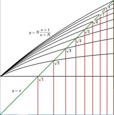 y := \frac{m+2n}{n+m} = \frac{x+2}{x+1} < \sqrt{2} \quad \mbox{?}