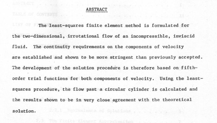 ELEMENT SOLUTION FOR POTENTIAL FLOW', Report No.86, Department of