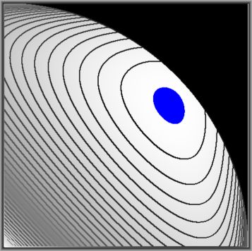 Another proof without words is attempted by plotting a contour map of the function, as depicted. Levels (`nivo`) of these isolines are defined (in Delphi Pascal) as:
