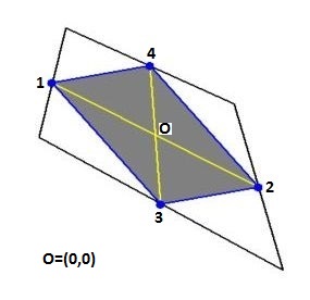 \begin{cases} x(0,0) = (x_1+x_2)/2=(x_3+x_4)/2\\y(0,0) = (y_1+y_2)/2=(y_3+y_4)/2\end{cases}