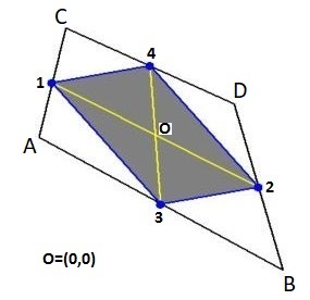(x_1,y_1) = \frac{\vec{A}+\vec{C}}{2} \quad ; \quad (x_2,y_2) = \frac{\vec{B}+\vec{D}}{2}