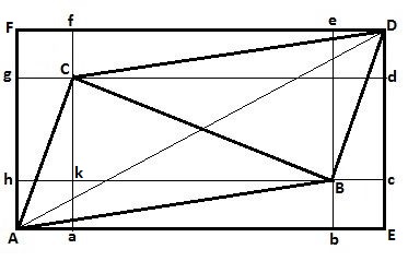 To begin with, a parallelogram $\overline{ABDC}$ is constructed inside a rectangle $\overline{AEDF}$:
