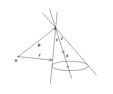 the direction of the cone axis and let $\vec{p}$ point to the top vertex of the