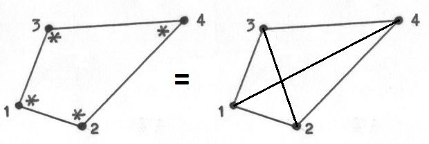 four overlapping triangles at the corners of that quadrilateral: