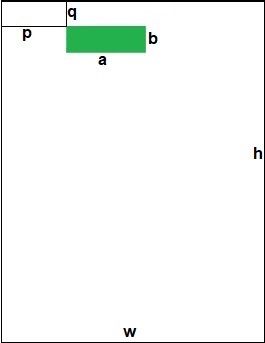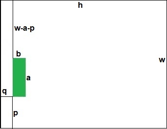 Perform the scaling and round to integer values: $$ \begin{cases} P = q \times W/h = 59 & ; & Q = (w-a-p) \times H/w = 274 \\ A = b \times W/h = 62 & ; & B = a \times H/w = 182 \end{cases} $$